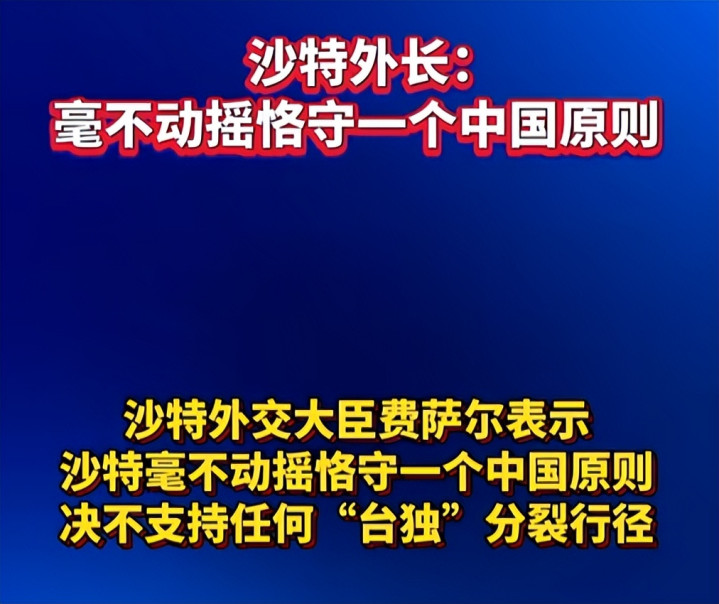 沙特外长费萨尔此前已明确表态反对"台独"分裂行径,而沙特王储在高层会晤中再次重申这一立场,意味着该原则已成为沙特对华政策的核心共识。